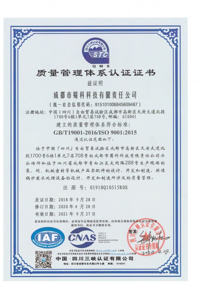 質(zhì)量管理體系認(rèn)證證書(shū)