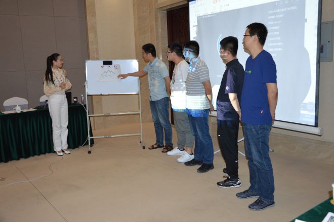 在進(jìn)行新員工入職培訓(xùn)的過程中,穿插進(jìn)行了分組小游戲:現(xiàn)場(chǎng)員工分為三組進(jìn)行了臨時(shí)組隊(duì)的隊(duì)歌、隊(duì)徽的創(chuàng)作和講解,主要考驗(yàn)成員間的策劃能力、領(lǐng)導(dǎo)力、執(zhí)行力,以及如何去合理的分配資源以及團(tuán)隊(duì)的協(xié)作精神;蒙眼作畫的比賽,考察了成員之間的協(xié)調(diào)能力和合作精神,需要彼此的容忍和配合,還要有一個(gè)明確堅(jiān)定的目標(biāo),比別的組堅(jiān)持的時(shí)間長(zhǎng)。
